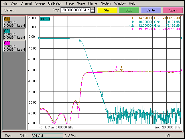 Quantic PMI Model 3SFB-7R5G18G-CD-1 is a 3-Channel Switch Filter Bank that operates over the frequency range of 7.5 to 18 GHz with a 6.5 dB insertion loss and 55 dB of isolation. This unit is capable of handling up to 1 W (30 dBm) CW maximum. Package size is 5.0" x 3.5" x 1.0" with SMA female connectors.