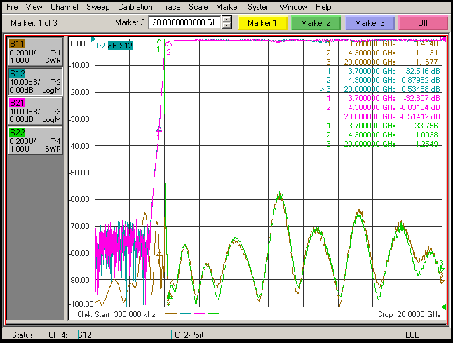 | Bandwidth (GHz): | CH 1: DC to 3.7 GHz CH 2: 4.3 to 20 GHz |