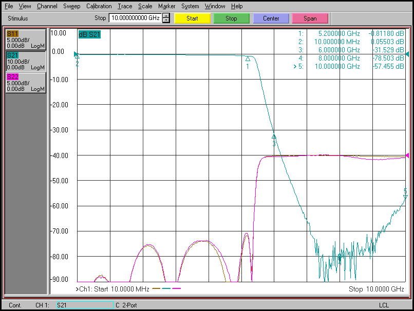 Quantic PMI Model LP5200M-CD-MLL is a lowpass filter that has a passband frequency of DC to 5.2 GHz. Offers very high Q with broadband performance. This unit has very low loss and is ideal for eliminating broadband harmonics. Package size is 1.22" x 0.59" x 0.031".