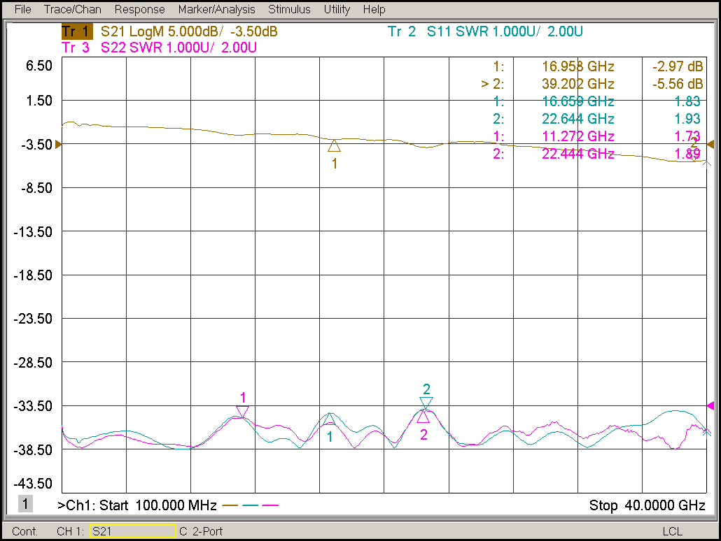 | VSWR In/Out: | 2.0:1 (0.1 to 18 GHz) Max, 2.25:1 (18 to 40 GHz) Max |