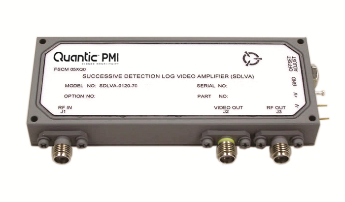 Quantic PMI Model SDLVA-0120-70 Options 500M105, 10DBM, MH is a Successive Detection Log Video Amplifier (SDLVA) that operates between the 0.5 to 1.5 GHz Frequency Range with a Dynamic Range of 70 dB Minimum and a TSS of -65 dBm. Designed using Cutting Edge GaAs Technology which provides Stunning Performance and Reliability in a Compact Package measuring 3.75" x 1.50" x 0.50" making it an Optimum Solution for High Speed Channelized Receiver Applications. This Unit offers a Maximum Fast Rise Time of ≤25 ns and a Rapid Fall Time of ≤30 ns.